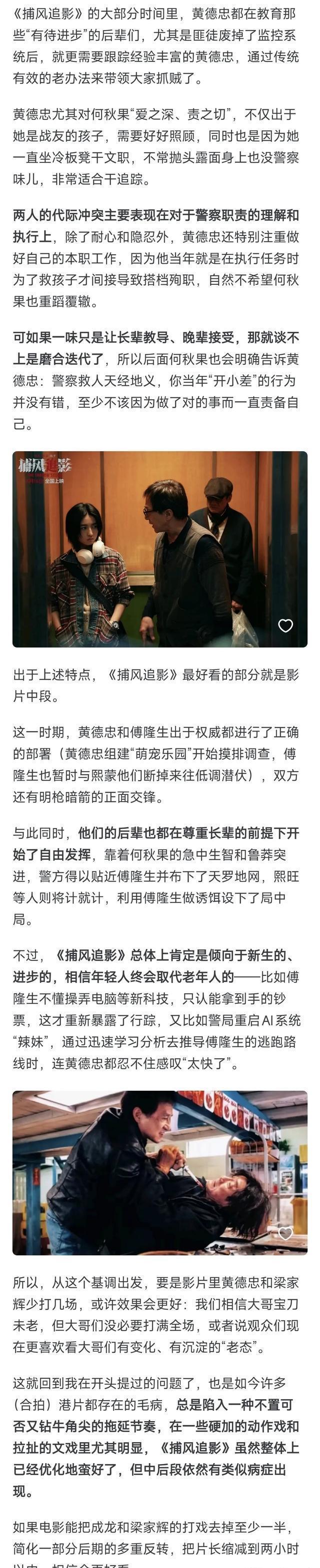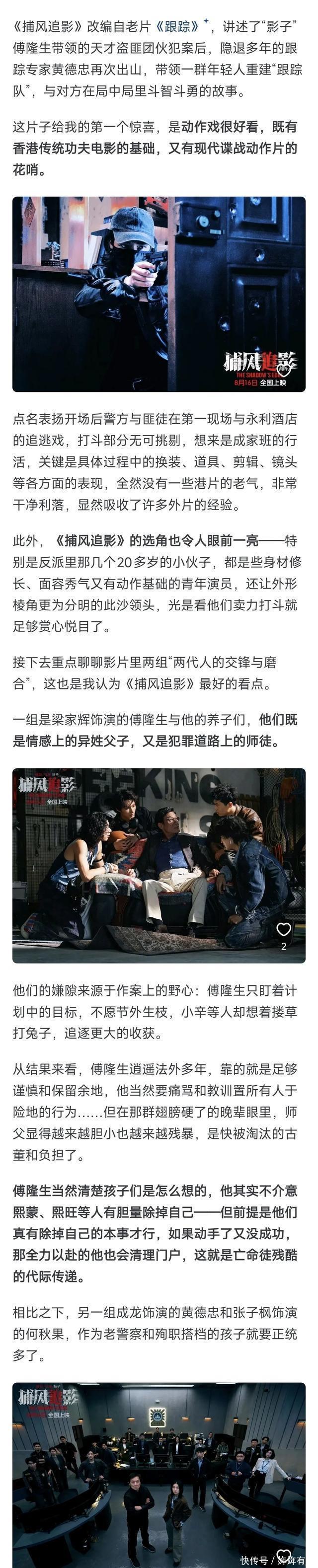 当前不要说暑期档唯一《东极岛》一部工业大片了,《捕风追影》来了。 打戏闲逸淋漓拳拳到肉,莫得慢打然后快放,成龙依然能打,张子枫也可以,年青演员也选的小帅哥,看点竣工。