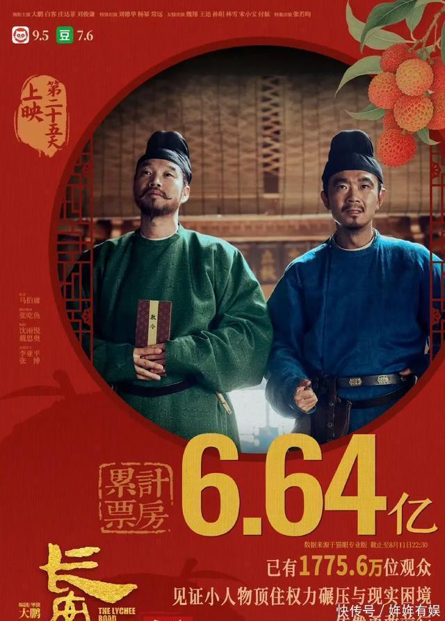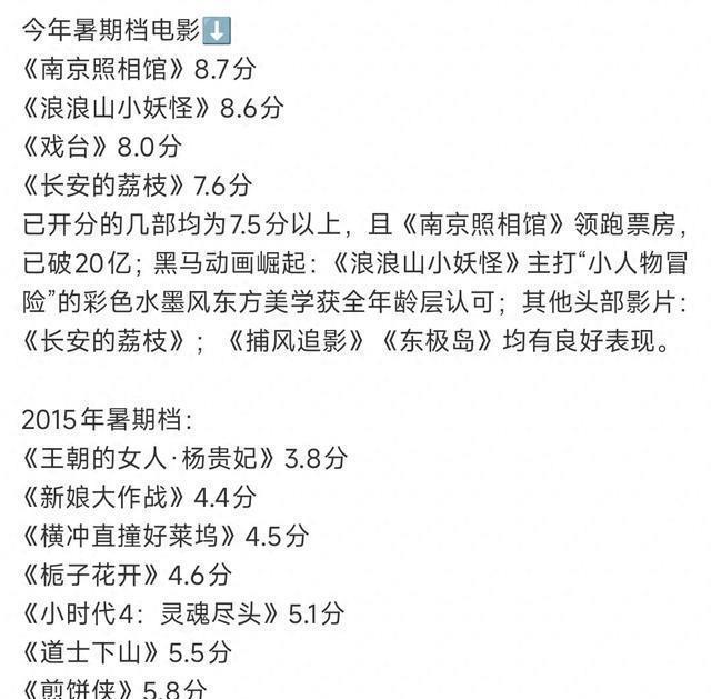暑期档电影质地提上起来,竞争当然也起来了。 《长安的荔枝》上映的时辰口碑好,原来权衡有十亿的,但那时同时的《罗小黑战记2》口碑也起来了,一个周后《南京摄影馆》又爆了,《长安的荔枝》票房就起不来了,当前还莫得破7亿,临了落点也等于7亿了。