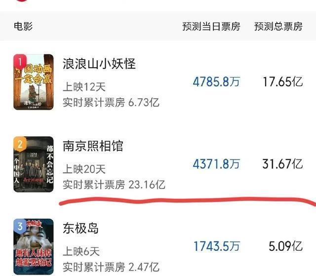 再说到《南京摄影馆》刚驱动权衡票房是12亿,效果上映后票房疯涨,权衡一度上调到40亿,原来没竞争的话可以冲一冲的,效果《浪浪山小魔鬼》来了,《南京摄影馆》权衡票房又回到了30亿,当前票房23亿。