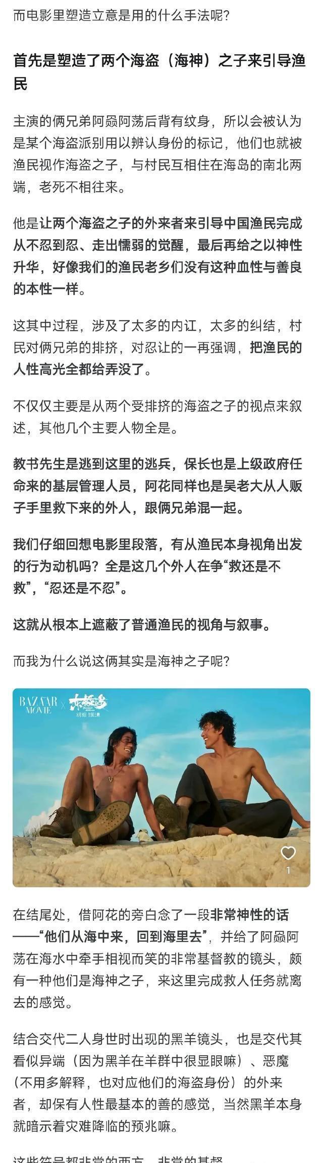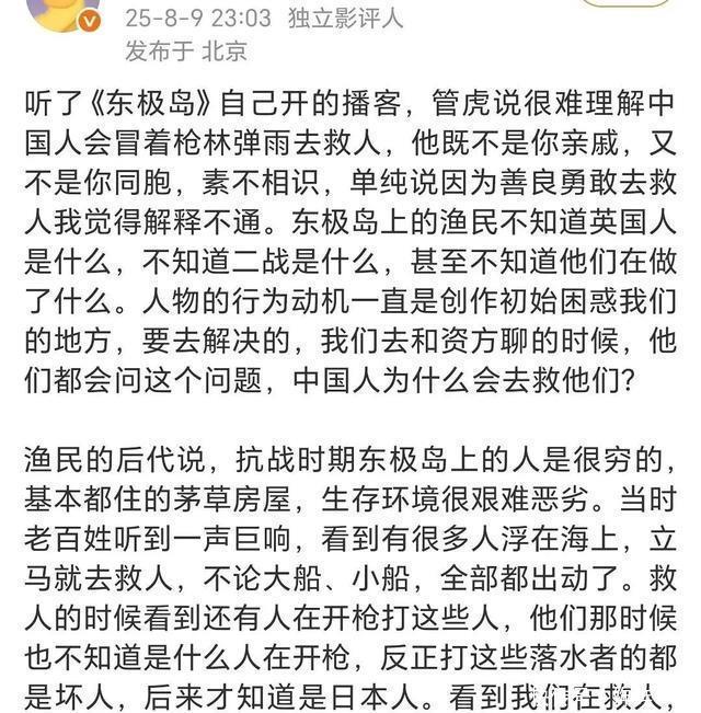 当前一经不是这些跟不上期间的导演打着主旋律的旗子拍点大片就能随纰漏便20亿30亿的期间了,如故当初《八佰》给的自信。 东极岛故事是好故事,殊效是好殊效,演员也花功夫了,但导演不驯服原型故事这样能把电影拍好呢。