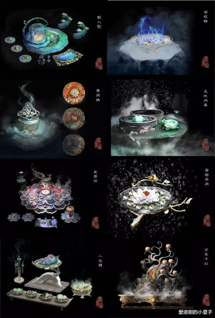鲛东说念主鲙,胡眼蜂,掌间珠,六合春,无肠公,双生菇,齐心签,一说念菜一个故事,一个故事一分东说念主性。