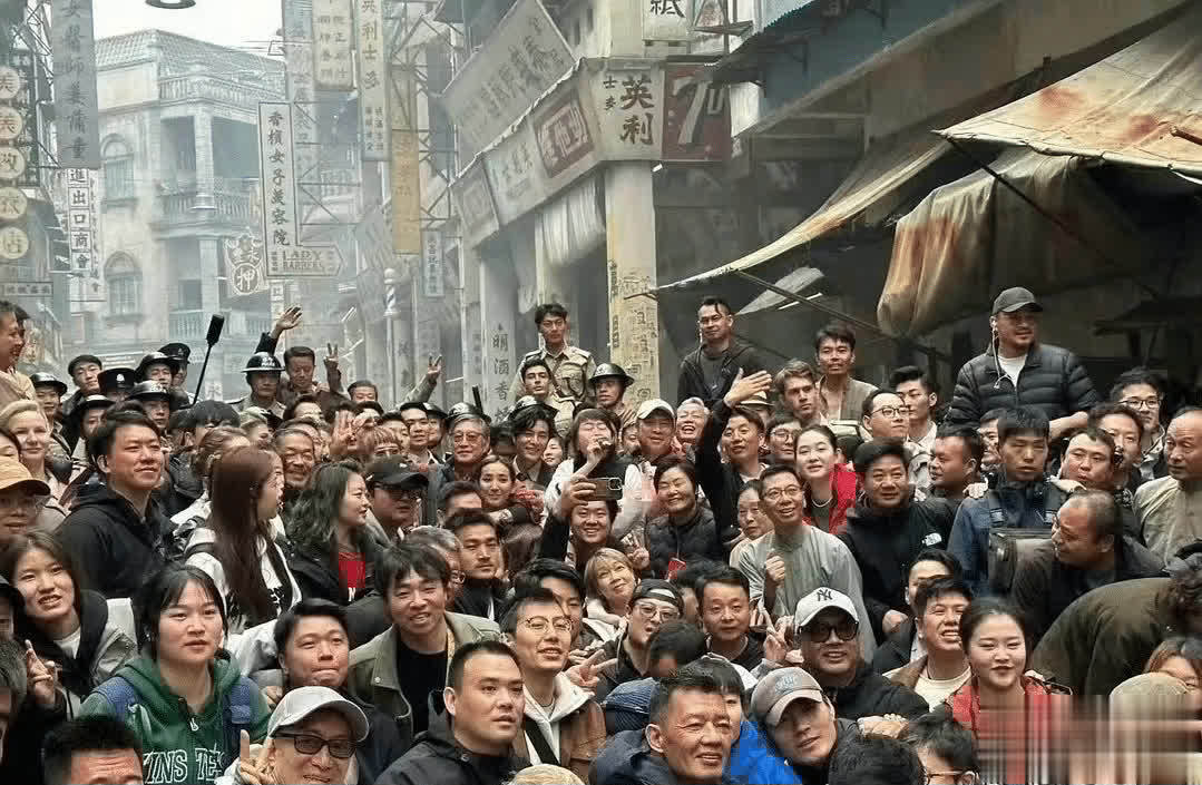 有网友上传了剧组拆伙照,近百东谈主挤在扫数拍合影,应该是在电影拍摄处所的影视城,开采和牌号看上去很确凿、很有年代感。导演刘伟强被围绕在中间,脸上带着浅笑,电影拆伙应该会鄙俗一些了。