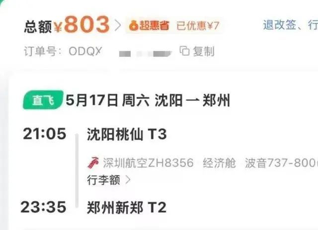 李女士提供的其表弟机票订单截图/图源:极目新闻