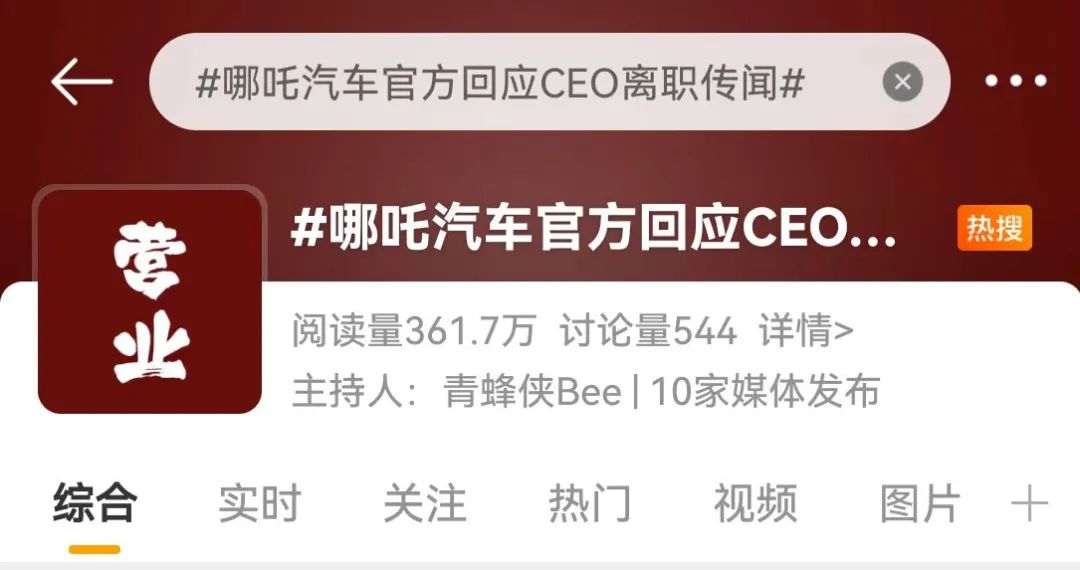 12月6日,哪吒汽车官方恢复CEO下野据说登上热搜!