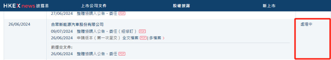 12月6日,清晰易官网显现,合众新能源的港股IPO央求仍在措置中。