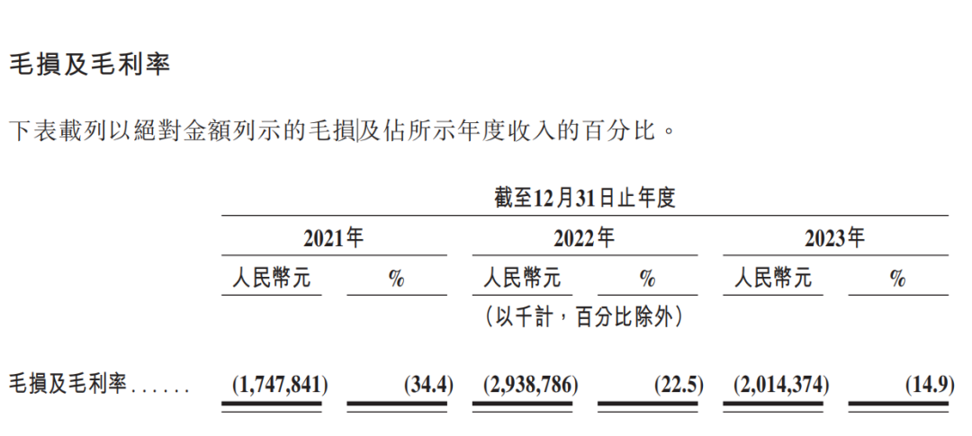 招股书(文告稿)显现,2021年、2022年、2023年,合众新能源的毛利率辩别为-34.4%、-22.5%、-14.9%,耗费金额辩别为48.40亿元、66.66亿元、68.67亿元。