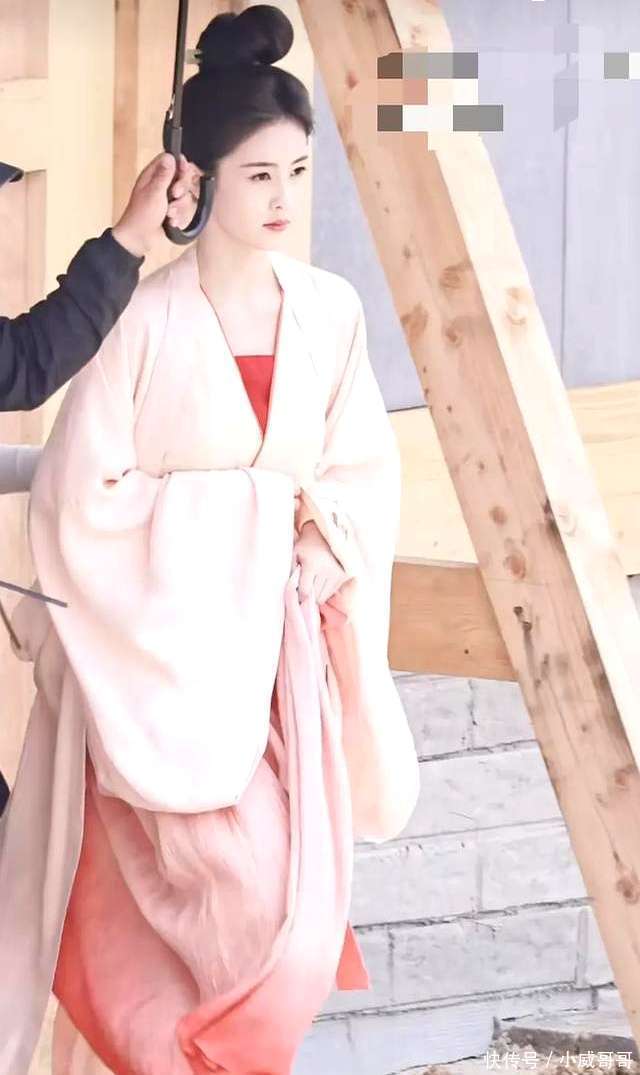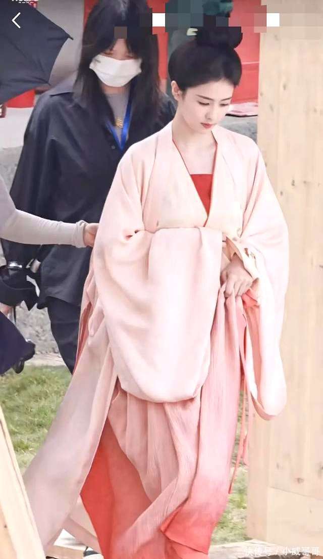 从当今曝光的白鹿拍摄路透照来看,她的发髻高耸,身着一袭粉色长裙,合座造型呈现出浓郁的晚唐作风。