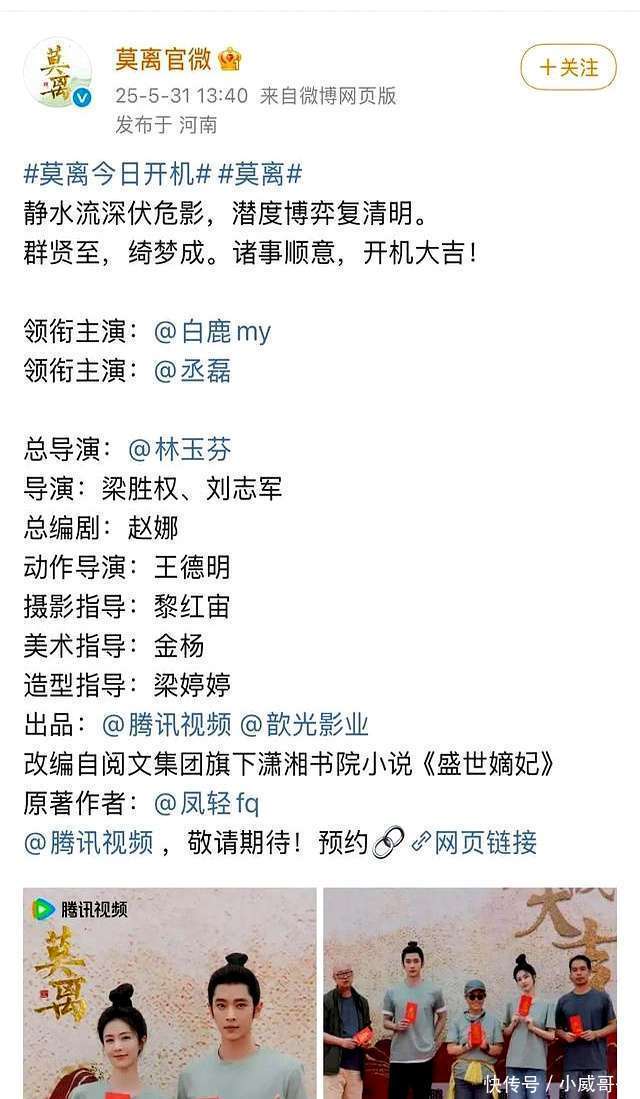 《莫离》的开机,象征着该剧认真参加拍摄阶段,期待巧合早日兑现,与不雅众碰面。