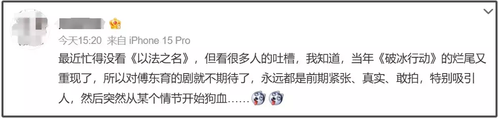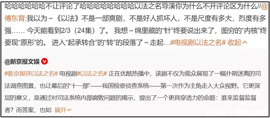 面临《以法之名》部分不雅众训斥,天然傅东育莫得回话,但接连转发央视、媒体两篇剧评之后,采用关闭评述区,也算是一种作风了。