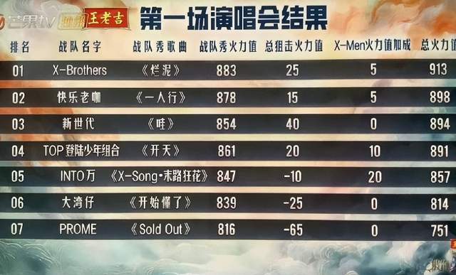 在第一轮舞台公演中,7个团平直进行歌曲的遴选,咱们可以发现,清寒选东说念主组队程序,照实清寒许多看点,而第一轮舞台公演的名次,也让东说念主相等随机,咱们可以看到,X-brother赢得第又名,答允老咖赢得第二名,TOP登陆少年赢得第四名,最让环球没念念到的是,大湾仔竟赢得第六名,如果莫得PRMOE,被淘汰的便是他们了。