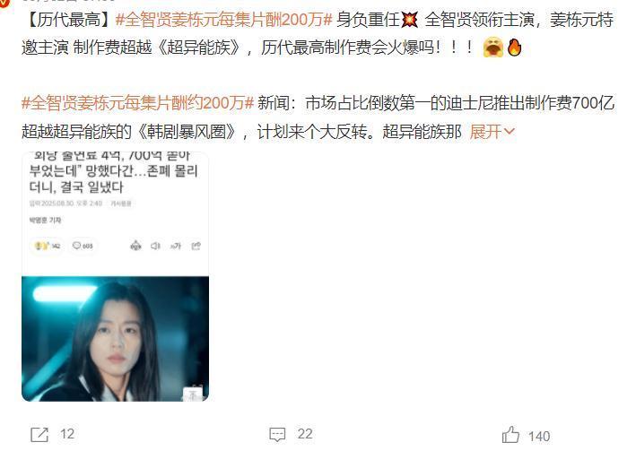 从传出的音讯上看,《摇风圈》的制作用度高达700亿韩元,咱们齐知说念韩剧《超异能族》的制作费还是是相配高的了,何况这部剧的题材格外,但《摇风圈》获胜卓绝这部剧,成为韩剧制作资本界的“天花板”。