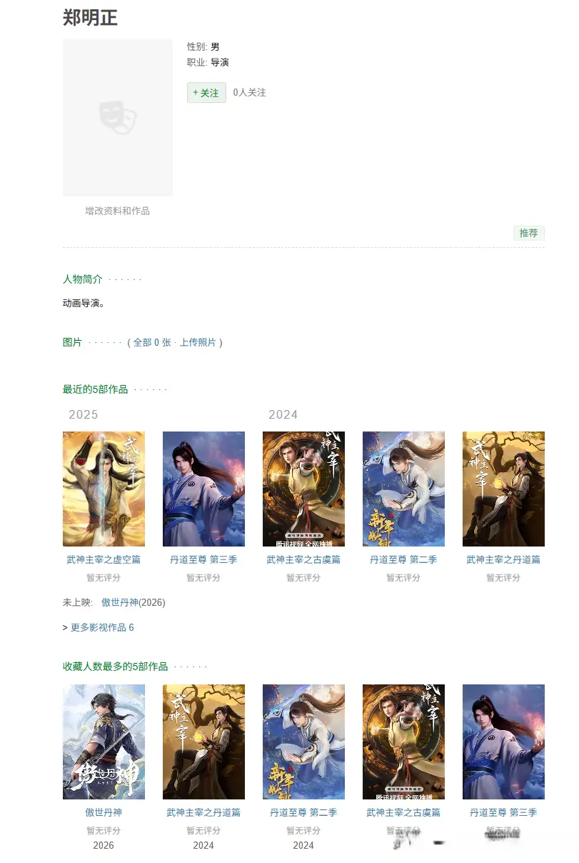《傲世丹神》动画的导演张袁杰还合手导过《真武巅峰》动画第四季等作品了,郑明正则是参与过《武神足下》、《丹说念至尊》等动画作品的制作了。