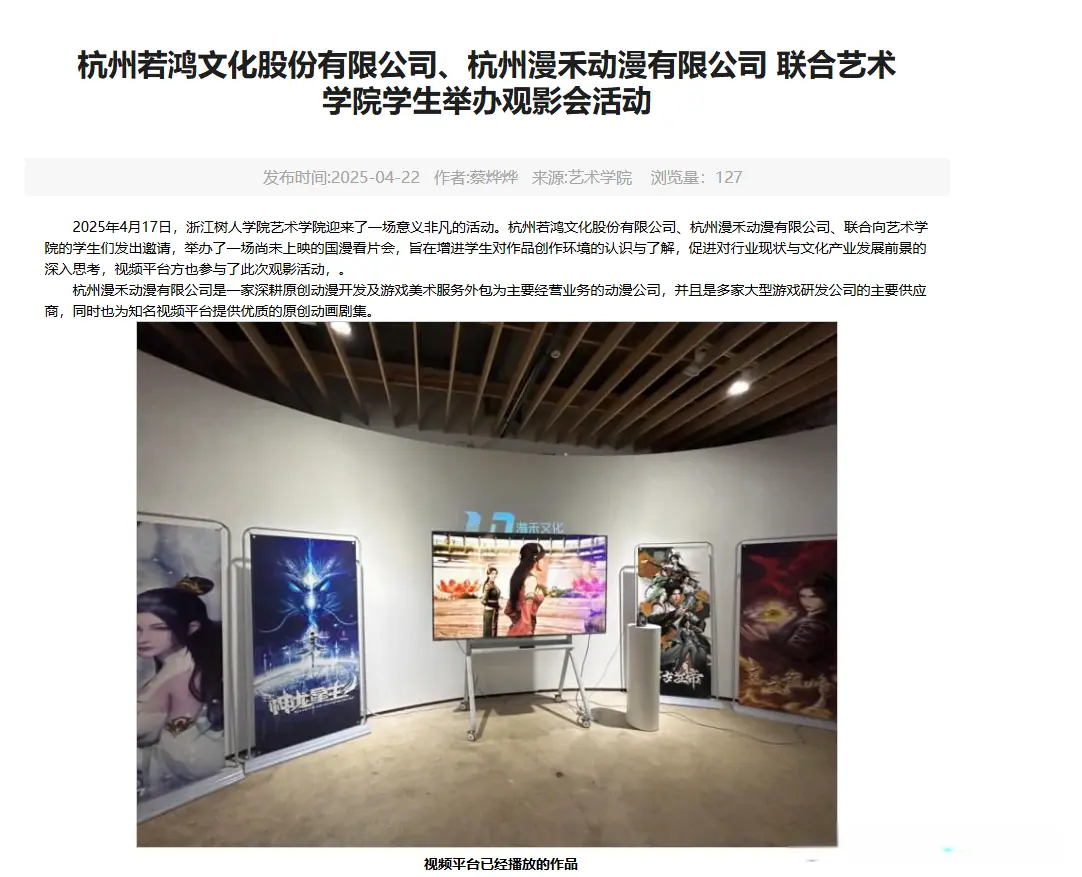 若鸿文化和漫禾文化还在本年4月纠合浙江树东说念主艺术学院学生举办不雅影会行动中一块出现了,