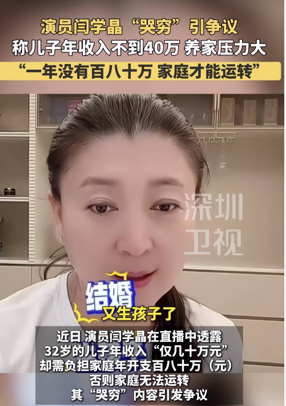 闫学晶在直播间谈及女儿的经济气象,随后因哭穷激发争议,登上热搜。
