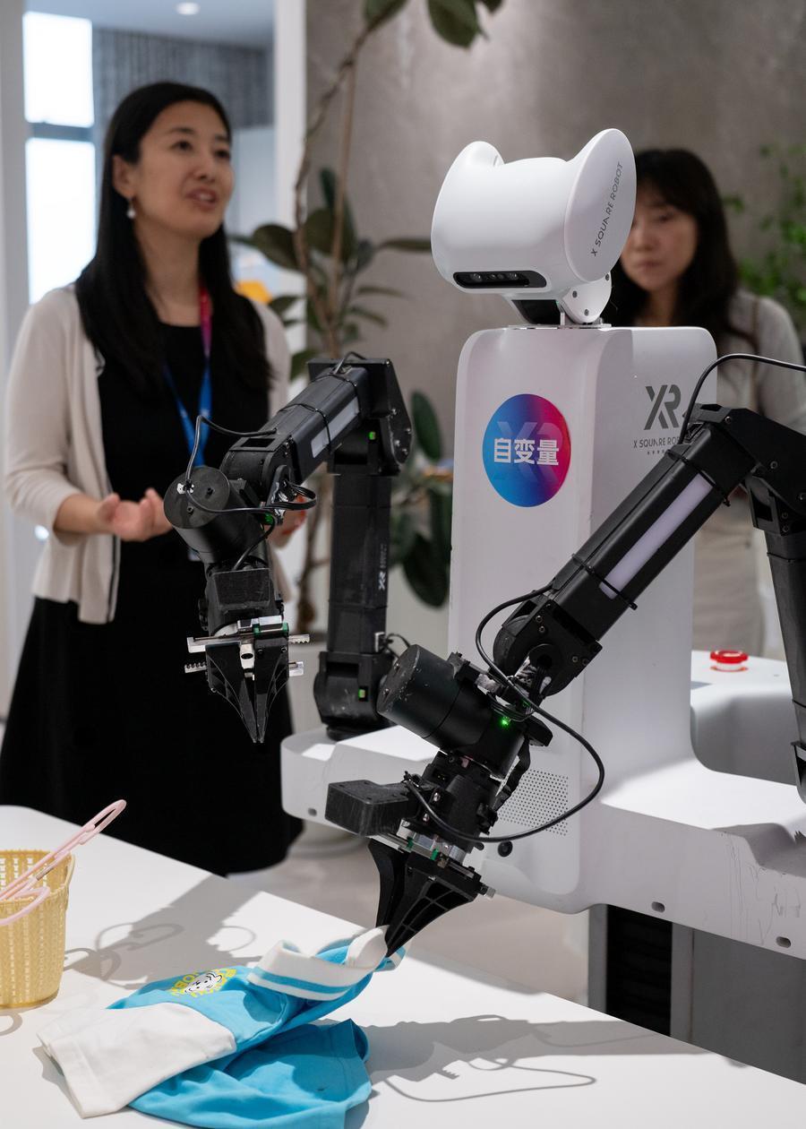 在深圳市南山区自变量机器东谈主科技(深圳)有限公司,机器东谈主施行整理穿戴任务。新华社记者 刘梦琪 摄