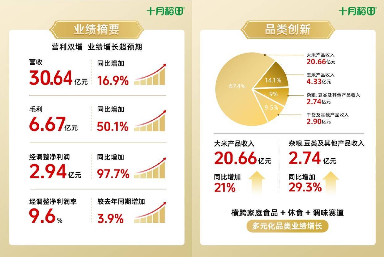 就在奖项公布的前一日,十月稻田发布2025年中期功绩阐述,阐述表现,公司上半年筹谋阐扬亮眼,杀青营收与净利润双增长:总收入达30.64亿元(东说念主民币,下同),同比增长16.9%;经调度净利润为2.94亿元,同比大幅增长97.7%。展现出强劲的盈利智商和健康的财务基本面。