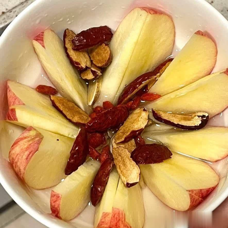 苹果1个、黄芪3克、去核红枣5颗、枸杞5克、【红糖10克/不加】